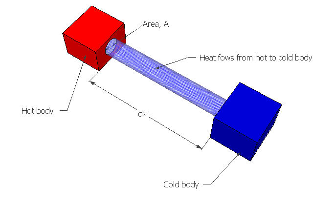 According to Fourier's law of heat conduction, the rate of heat flow is directly proportional to the area of the section at right angles to the flow of heat, and also to the change in temperature over the length of heat flow.