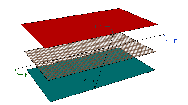 Consider we have an imaginary surface F-F in a gas have temperature difference of T_2-T_1 between two layers of surface. Then molecules at higher temperature surface will have higher velocity of vibration than that in the lower temperature region. Hence there is a possibility of conduction heat transfer through this imaginary surface.