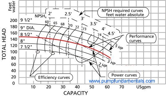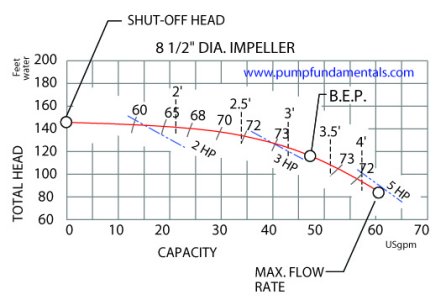 In the selection process, you will be trying to match your flow rate with the B.E.P. of the pump. It is not always possible to match the flow rate with the B.E.P. (best efficiency point), if this is not possible, try to remain in the range of 80% to 110% of the B.E.P..