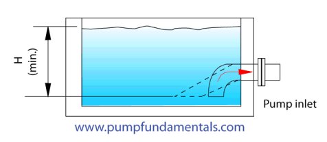 There is a minimum height to be respected between the free surface of the pump suction tank and the pump suction. If this height is not maintained a vortex will form at the surface and cause air to be entrained in the pump reducing the pump capacity.