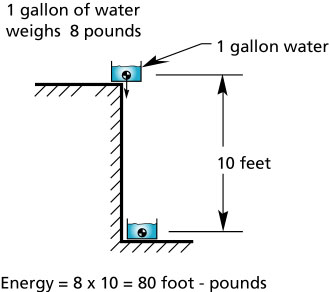 [hr][/hr] The following figure shows how much energy is required to displace vertically one gallon of water.
