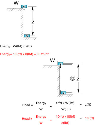 [hr][/hr] If we use energy to describe how much work the pump needs to do to displace a volume of liquid we need to know the weight. If we use head, we only need to know the vertical distance of movement. This is very useful for fluids because pumping is a continuous process, usually when you pump you leave the pump turned on, you don't start and stop the pump for every pound of fluid displaced. We are mainly interested in establishing a continuous flow rate.