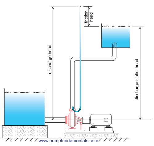 - static head, which depends on the difference of the pipe end discharge height vs. the suction tank fluid surface height