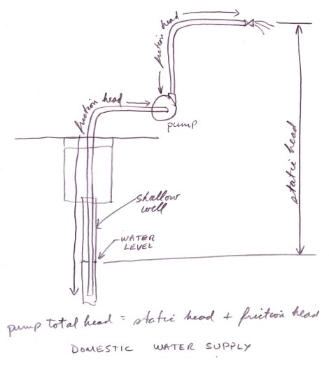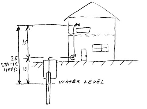 How much static head is required to pump water up from the ground floor to the second floor, or 15 feet up? Remember that you must also take into consideration the level of the water in the suction tank. If the water level is 10 feet below the pump suction connection then the static head will be 10 + 15 = 25 feet. Therefore the total head will have to be at least 25 feet plus the friction head loss of the fluid moving through the pipes.