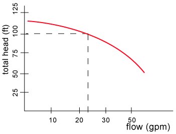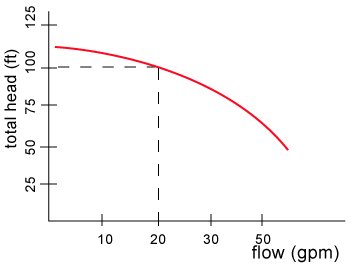 The manufacturers have taken this a step further, the amount of pressure that a pump can produce will depend on the density of the fluid, for a salt water solution which is denser than pure water, the pressure will be higher for the same flow rate. Once again, the manufacturer doesn't know what type of fluid is in your system, so that a criteria that does not depend on density is very useful. There is such a criteria and it is called TOTAL HEAD, and it is defined as the difference in head between the inlet and outlet of the pump.