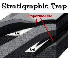 The stratigraphic trap is a change in the lithology of the rock sequence. This change is caused by erosional forces or changes in rock type within a limited areal extent. An unconformity is an erosional feature where a portion of the geological sequence is eroded and an impermeable rock is deposited on top of a porous formation. The process of erosion will enhance or create the porosity and permeability necessary for the existence of a petroleum reservoir. Other stratigraphic trapping include channel sand deposits surrounded by shale, growth of limestone reefs and the formation of barrier islands or sand bars along the ancient shoreline.