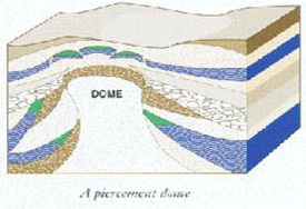 The combination of this lesser density and plasticity resulted in a buoyant effect if flow possibilities existed. Geologic events caused fracturing of overlying confining rocks. The salt, forced upward by the overburden pressures, began to flow plastically back to the surface, intruding into the overlying rock structures